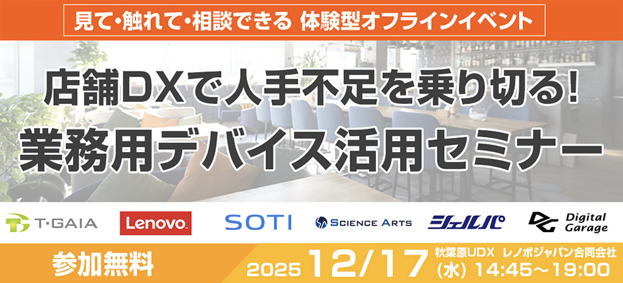 2025年12月17日(水)にレノボ・ジャパン合同会社(東京都千代田区)にて、飲食・小売業界向けにオフラインイベント「店舗DXで人手不足を乗り切る!業務用デバイス活用セミナー」を開催します。