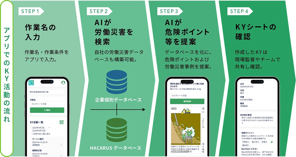 HACARUS KY はアプリ上で、直感的なかんたん操作でKYシートを作ることができます。